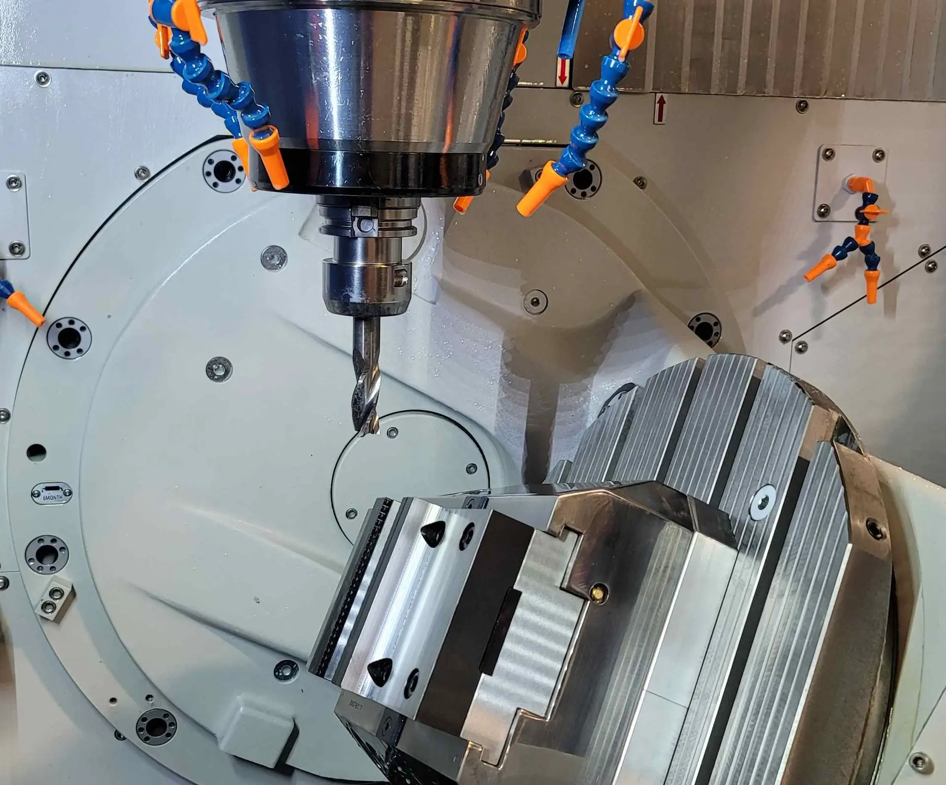 The DVF 5000 is the core of our advanced machining capability. This 5-axis machining center allows us to complete highly complex parts in a single setup, reducing the need for repositioning and dramatically improving accuracy. Its rotary table and full simultaneous motion enable machining of deep pockets, sculpted surfaces, compound angles, and multi-sided features that would otherwise require multiple fixtures.